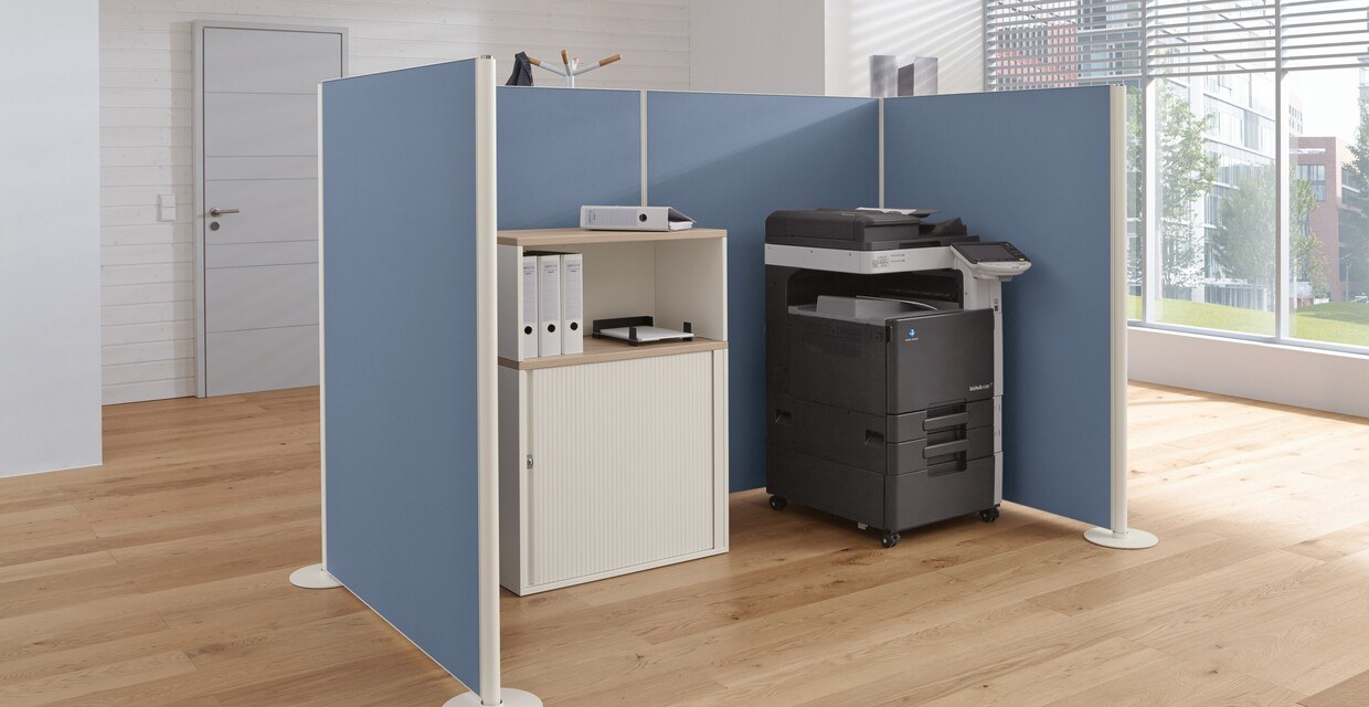 Empfohlen für: Offene Bürozonen, Mehrpersonenbüros, Arbeitsplatz in Blockstellung.
