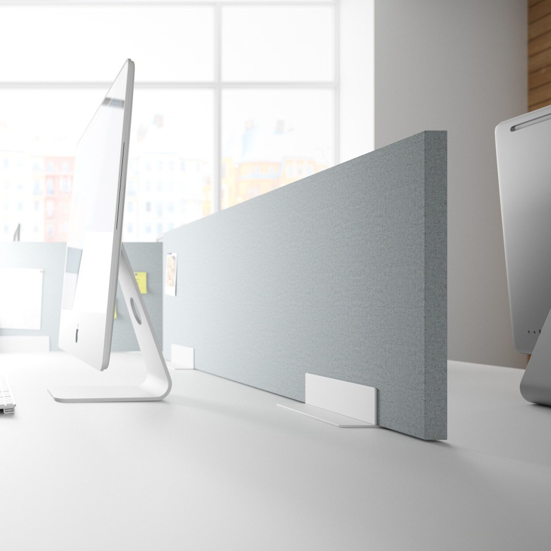 Neben der Separierung von Arbeitsplätzen sorgen Tisch- oder Sideboardaufsätze für ein spürbar verbessertes Wohlempfinden im akustischen Nahfeld.